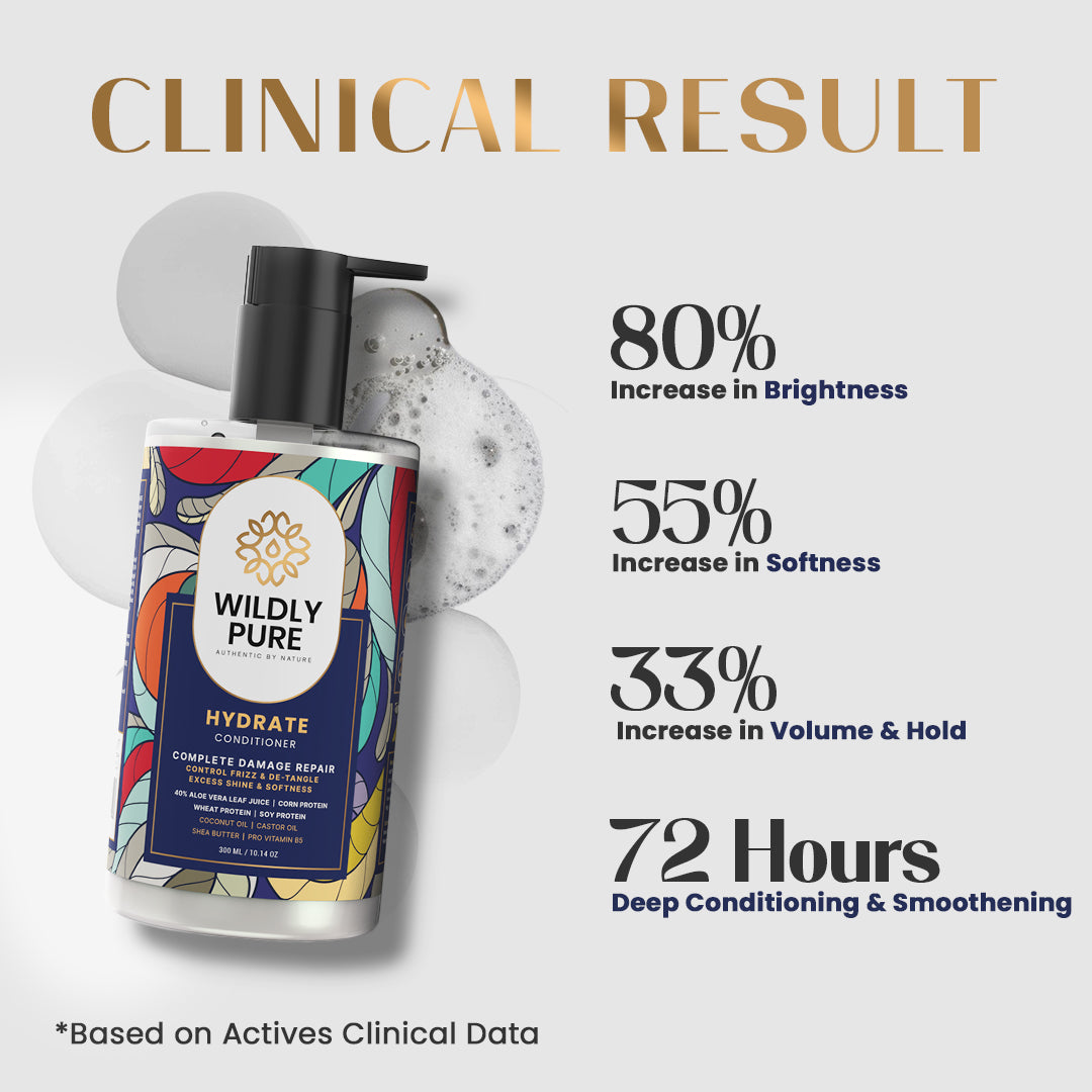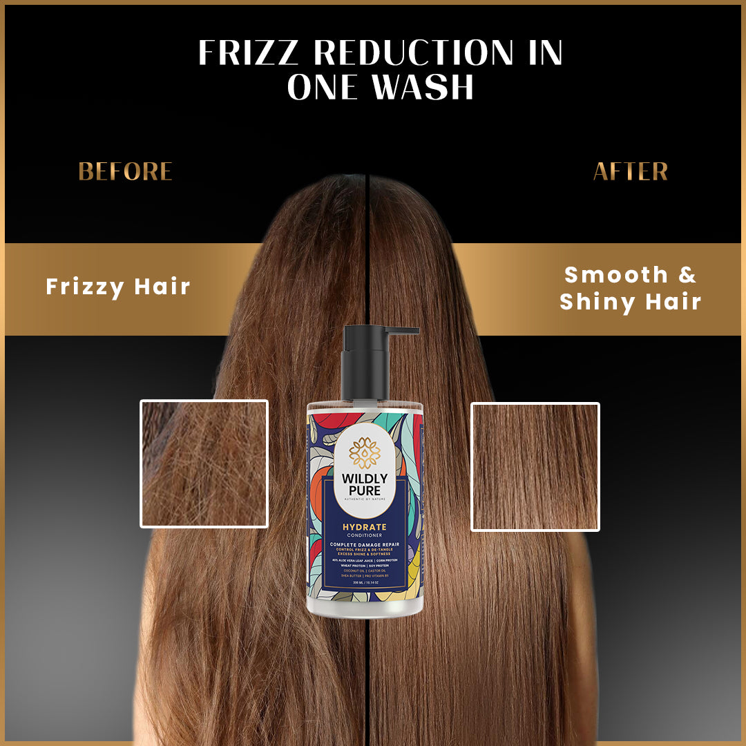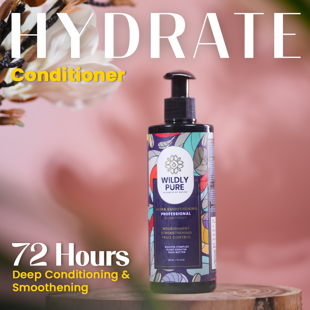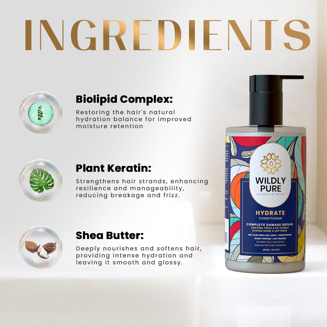 Indulge in the ultimate hair hydration with Hydrate Conditioner, enriched with a luxurious blend of Biolipid complex, plant keratin, and Shea Butter. Specially formulated for dry and frizzy hair, this deep conditioning treatment delivers intense moisture and ultra smoothening benefits. Biolipid complex replenishes essential lipids, restoring hair's natural hydration balance, while plant keratin strengthens strands, promoting resilience and manageability. Shea Butter deeply nourishes and softens, leaving hair irresistibly smooth and glossy. Transform your locks with each use, revealing silky-smooth strands that exude radiance and vitality. Elevate your haircare routine and indulge in the luxurious pampering your hair deserves with Hydrate Conditioner.