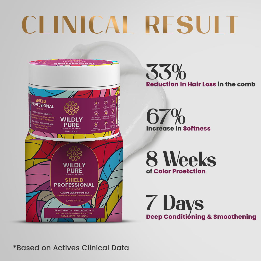 Shield Hair Mask harnesses the potency of plant keratin, natural biolipid complex, and hyaluronic acid for transformative hair care. This robust blend fortifies strands, enhances keratin strength, and delivers deep conditioning. Plant keratin amplifies resilience and manageability, while the biolipid complex replenishes essential lipids, fostering healthier locks. Hyaluronic acid provides intense hydration, restoring moisture balance for supple strands. Additionally, Shield Hair Mask offers color protection, safeguarding the vibrancy of your hair. Experience the ultimate hair rejuvenation with Shield Hair Mask, unveiling silky-smooth, fortified strands with each application.